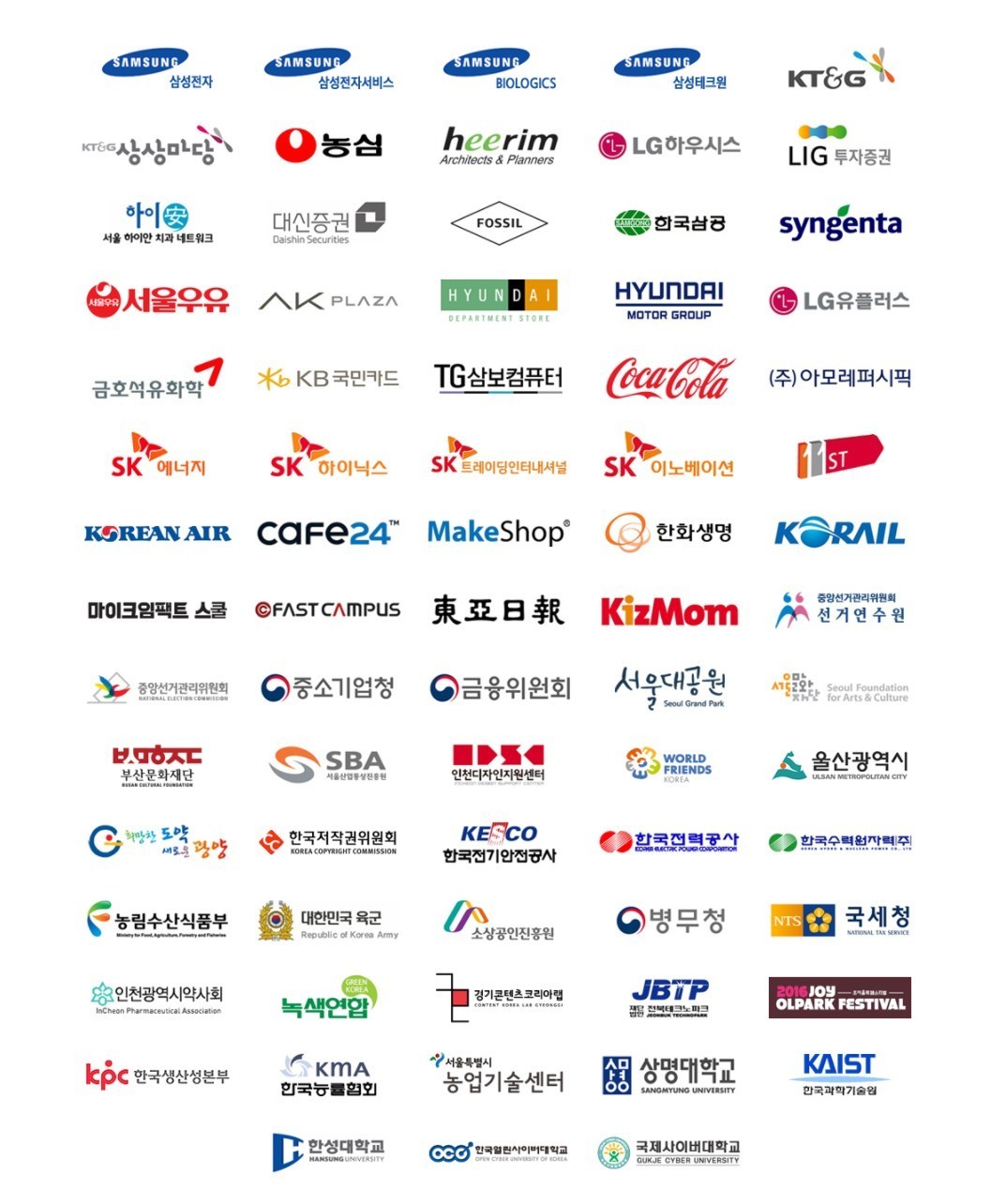 카이스트(서울/대전), HP, 인하대학교, 숭실대학교, 송파구청, 동작구청, 서천군청, 대한적십자사, 서울대학교, 존아저씨의차고, 총각네야채가게, 도봉노인종합복지관, 하나투어, 갤러리아백화점, 신세계백화점, 롯데백화점, 현대백화점, 국가공무원인재개발원, 인클로버재단, 주한영국대사관, 한려해상생태탐방원, 하상장애인복지관, KT&G 상상유니브, 쓰리디시스템즈, 이노션, 강원도교육연수원, 아모레퍼시픽, 대왕, 대신증권, KB국민카드, 한국CIO포럼, 이화여대, 락앤락, 동탄노인복지관, 한국중부발전, 한국발전공기업협력본부, 한국생산성본부, 한국표준협회, 인천대학교, 화성시꿈마루, 양주시꿈마루, 고양시꿈마루, 서울시구상공회(도봉구, 영등포구, 광진구, 관악구, 중구, 구로구, 송파구, 금천구, 마포구, 성동구, 강북구), 고양시여성인력개발센터, 대웅제약, 한국암웨이, SC제일은행, 삼성인력개발원, 안양시청, 더아리움(서울여성공예센터), 국민연금공단, 새벗하우스, 리툴코리아, 세종학당재단, 이베이코리아, 폴리텍대학, 대전DS평생교육원, 원주시교육지원청, 월악산국립공원, 충청남도, 속리산국립공원, 한국척수장애인협회, 원주두레공예협동조합, 루닛, 내장산국립공원, 영주시노인복지관, 사랑의전화, 화성시농업기술센터, 고양시여성창업지원센터, 카나, 한국보육진흥원, 안양시수리장애인복지관, 서울시사회복지협의회, 한국정신재활시설협회, 서울시중구건강가정지원센터, 경기도경제과학진흥원, 인천석남도서관, 대구교육연수원, 상주시장애인복지관, 한국지체장애인협회, 동해시교육지원청, 가천CEO아카데미, 화성시새일센터, 호크, 횡성군자원봉사센터, 강서구자원봉사센터, 영등포구자원봉사센터, 안산시관산도서관, 마이크임팩트스쿨, 익산농업기술센터, 영양군농업기술센터, 부안농업기술센터